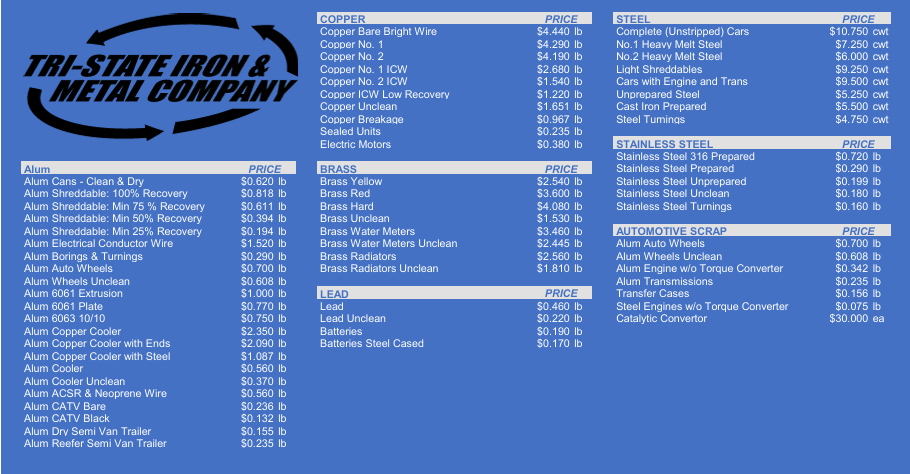 Stop worrying about getting the best price for your scrap. Tri-State will beat any advertised price in town.